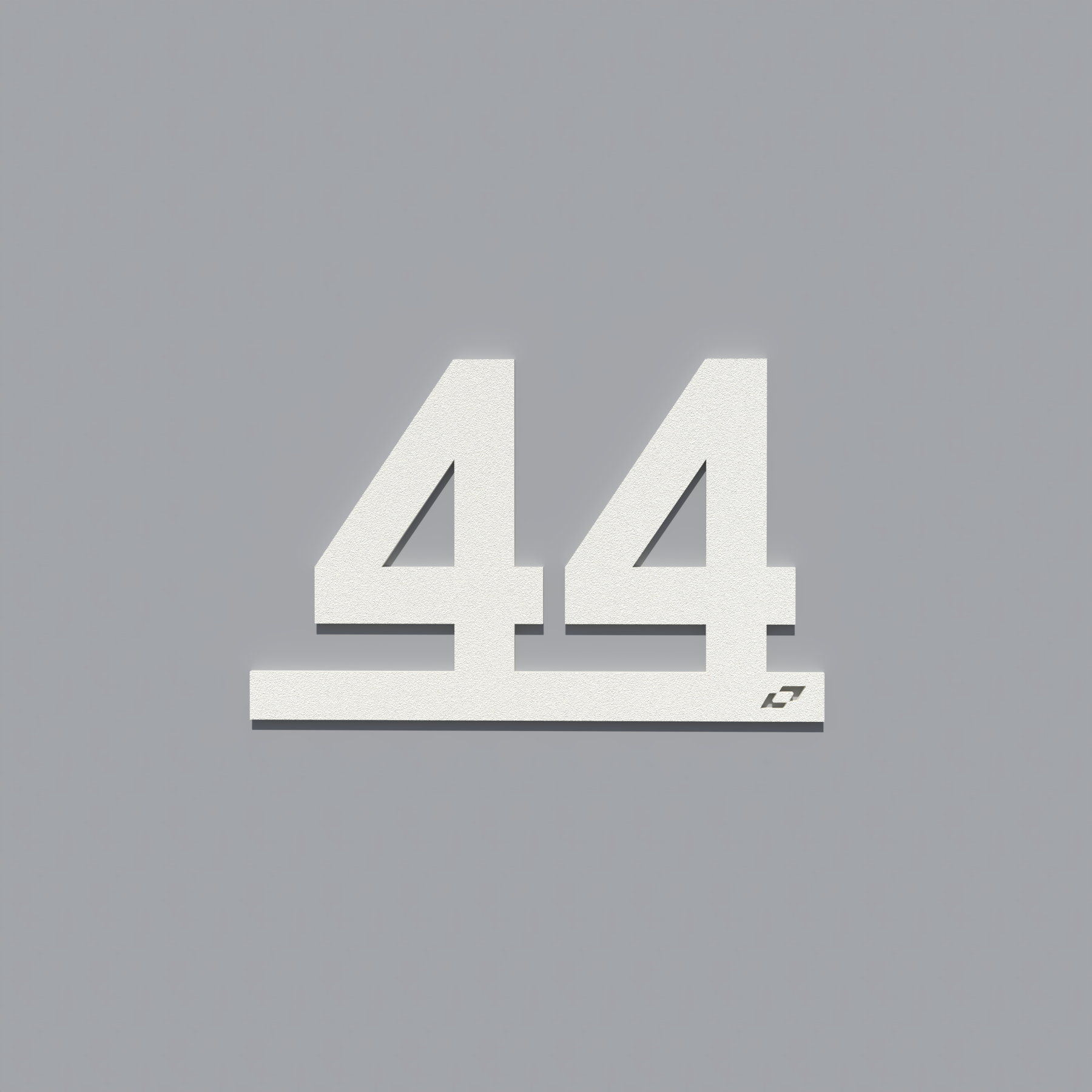 Μεμονωμένος (φλατ) διψήφιος αριθμός, από Αλουμίνιο πάχους 1,5mm lasercut. Στήριξη σε οποιαδήποτε λεία επιφάνεια με ισχυρή ταινία διπλής όψης. Βαφή ηλεκτροστατική με εγγύηση 5 χρόνια. Κατάλληλο για εξωτερική και εσωτερική χρήση