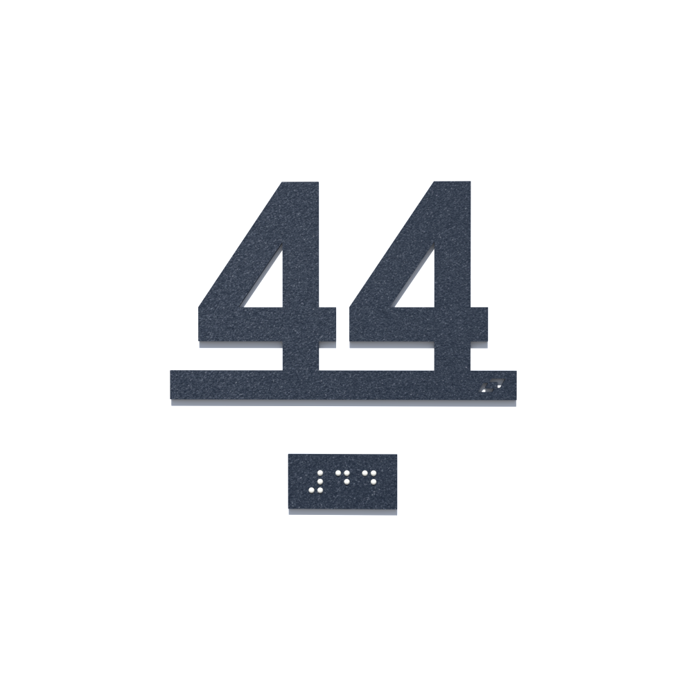 Μεμονωμένος (φλατ) διψήφιος αριθμός, από Αλουμίνιο πάχους 1,5mm lasercut. Στήριξη σε οποιαδήποτε λεία επιφάνεια με ισχυρή ταινία διπλής όψης. Βαφή ηλεκτροστατική με εγγύηση 5 χρόνια. Κατάλληλο για εξωτερική και εσωτερική χρήση