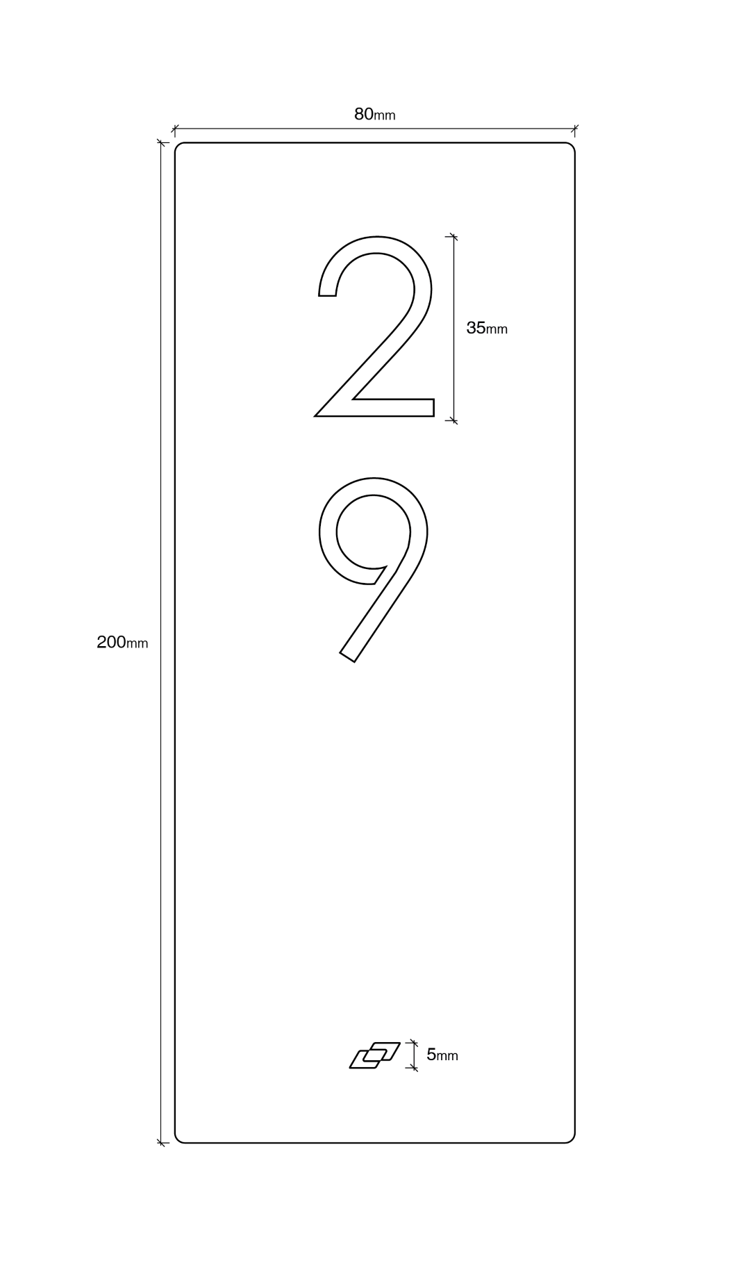 Η πινακίδα κατασκευάζεται από αλουμίνιο πάχους 1,5mm με laser cut κοπή για απόλυτη ακρίβεια. Διαθέτει δεύτερο επίπεδο (2-layer design) από αλουμίνιο 1.5mm, προβαμμένο ασημί ή γκρι σαγκρέ χρώμα. Η ηλεκτροστατική βαφή εξασφαλίζει υψηλή αντοχή σε καιρικές συνθήκες και φθορά, με εγγύηση 5 ετών.
