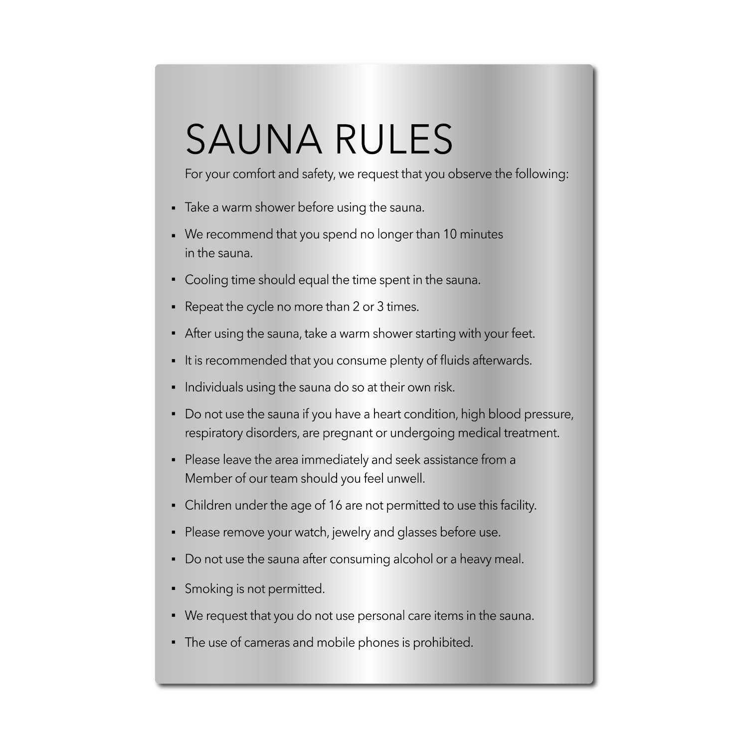 Κανόνες SAUNA - Ασημί Ματ