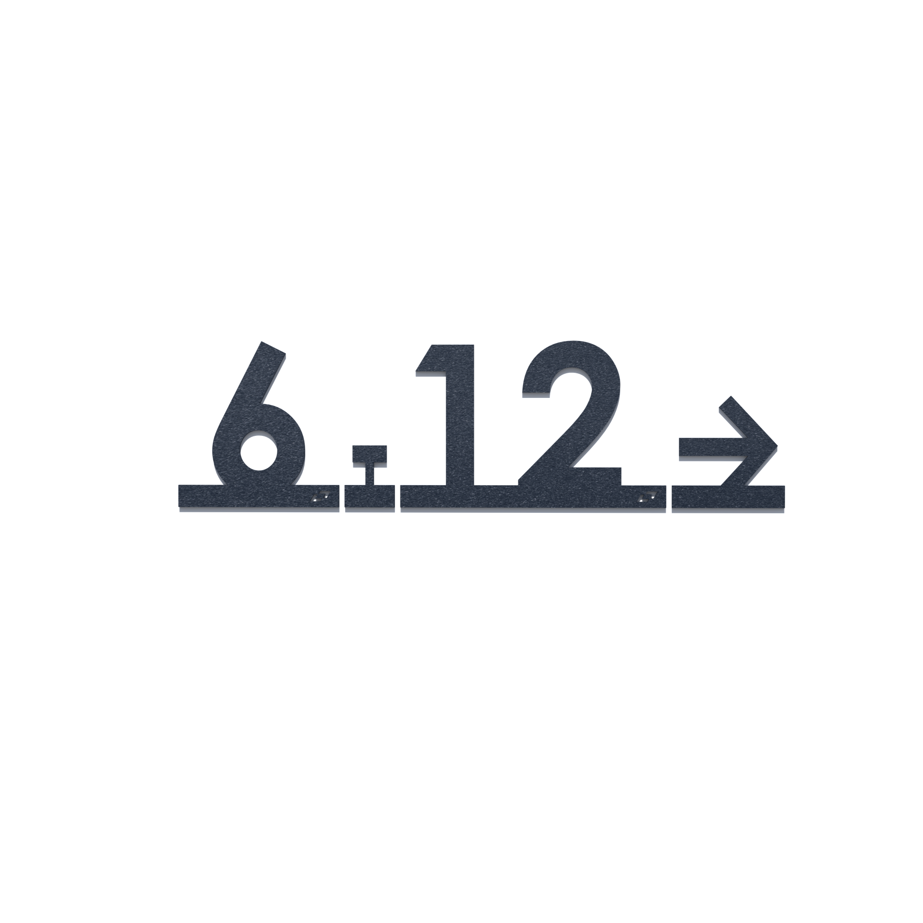 Μεμονωμένοι (φλατ) αριθμοί δωματιών και σύμβολα κατεύθυνσης (ΑΠΟ - ΕΩΣ) + ΒΕΛΟΣ από Αλουμίνιο πάχους 1,5mm lasercut. Στήριξη σε οποιαδήποτε λεία επιφάνεια με ισχυρή ταινία διπλής όψης. Βαφή ηλεκτροστατική με εγγύηση 5 χρόνια. Κατάλληλο για εξωτερική και εσωτερική χρήση.