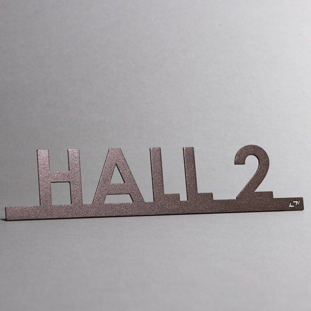 Μεμονωμένα (φλατ) γράμματα, από Αλουμίνιο πάχους 1,5mm lasercut. Στήριξη σε οποιαδήποτε λεία επιφάνεια με ισχυρή ταινία διπλής όψης. Βαφή ηλεκτροστατική με εγγύηση 5 χρόνια. Κατάλληλο για εξωτερική και εσωτερική χρήση