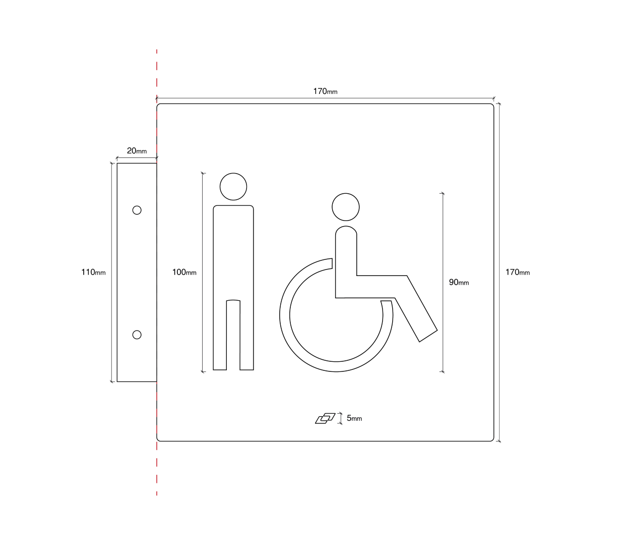 Προβαλλόμενη πινακίδα (projecting) κατασκευασμένη από αλουμίνιο πάχους 1,5mm, με laser cut κοπή. Η στήριξη πραγματοποιείται εύκολα σε οποιαδήποτε λεία επιφάνεια με ισχυρή ταινία διπλής όψης, ενώ υπάρχει και η δυνατότητα τοποθέτησης σε τοίχο με ούπατ και βίδες.