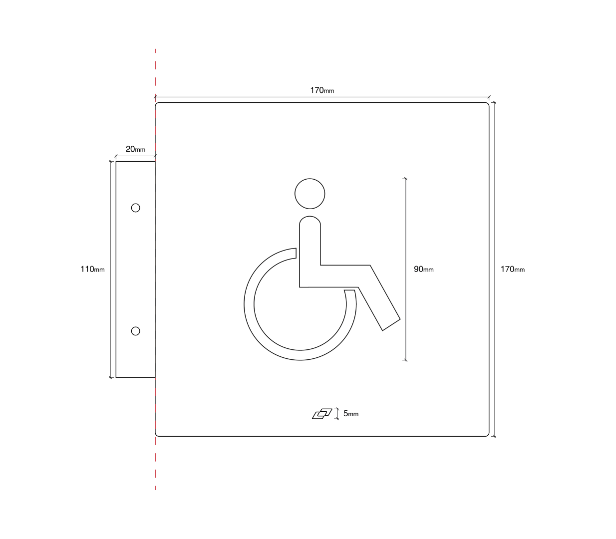 Προβαλλόμενη πινακίδα (projecting) κατασκευασμένη από αλουμίνιο πάχους 1,5mm, με laser cut κοπή. Η στήριξη πραγματοποιείται εύκολα σε οποιαδήποτε λεία επιφάνεια με ισχυρή ταινία διπλής όψης, ενώ υπάρχει και η δυνατότητα τοποθέτησης σε τοίχο με ούπατ και βίδες.